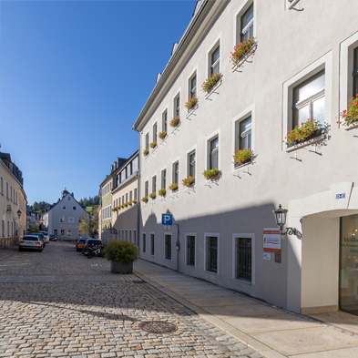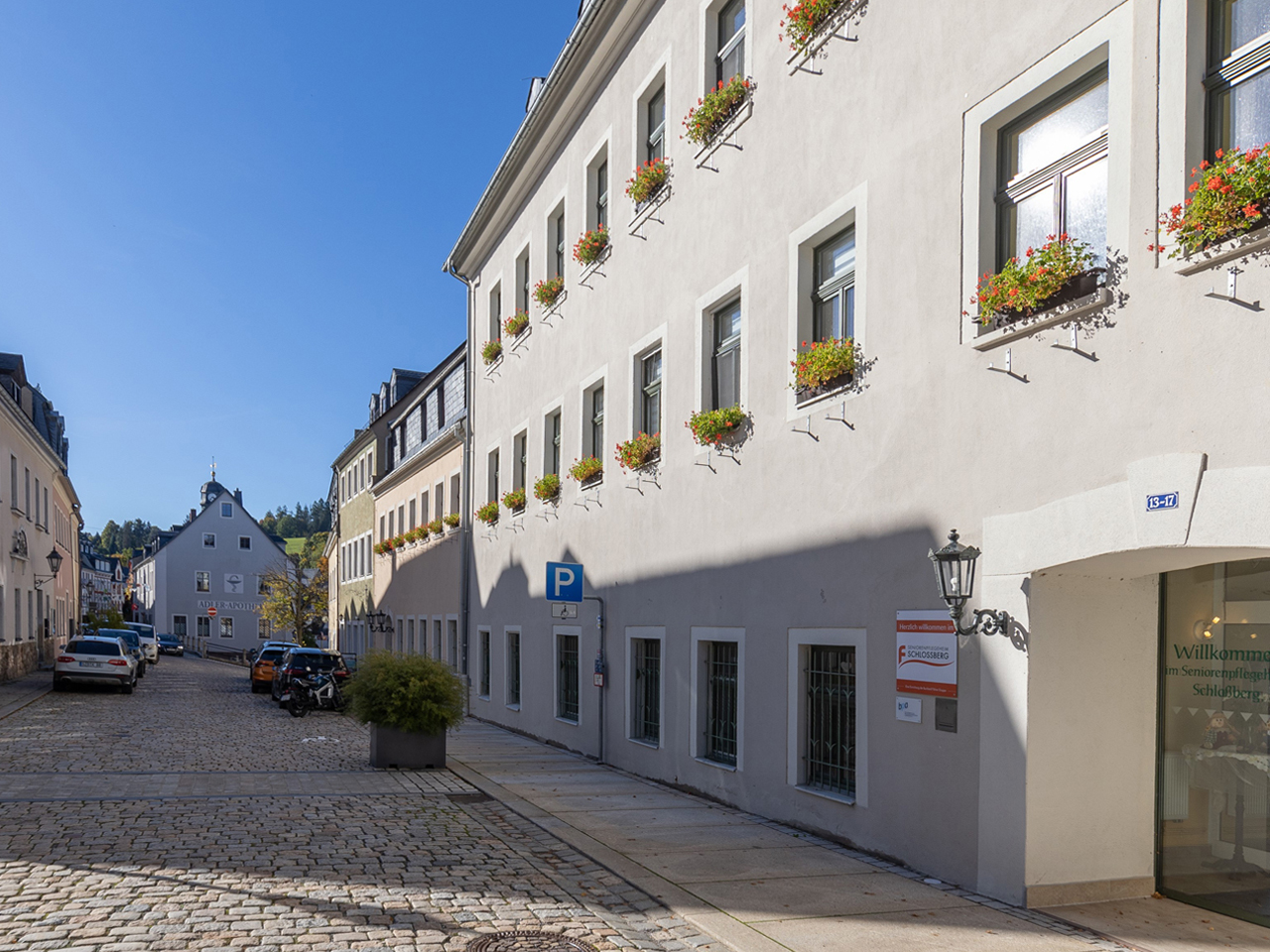 Im Herzen des erzgebirgischen Schwarzenbergs, umgeben von einer Schleife des Schwarzwassers, befindet sich das Seniorenpflegeheim Schloßberg.